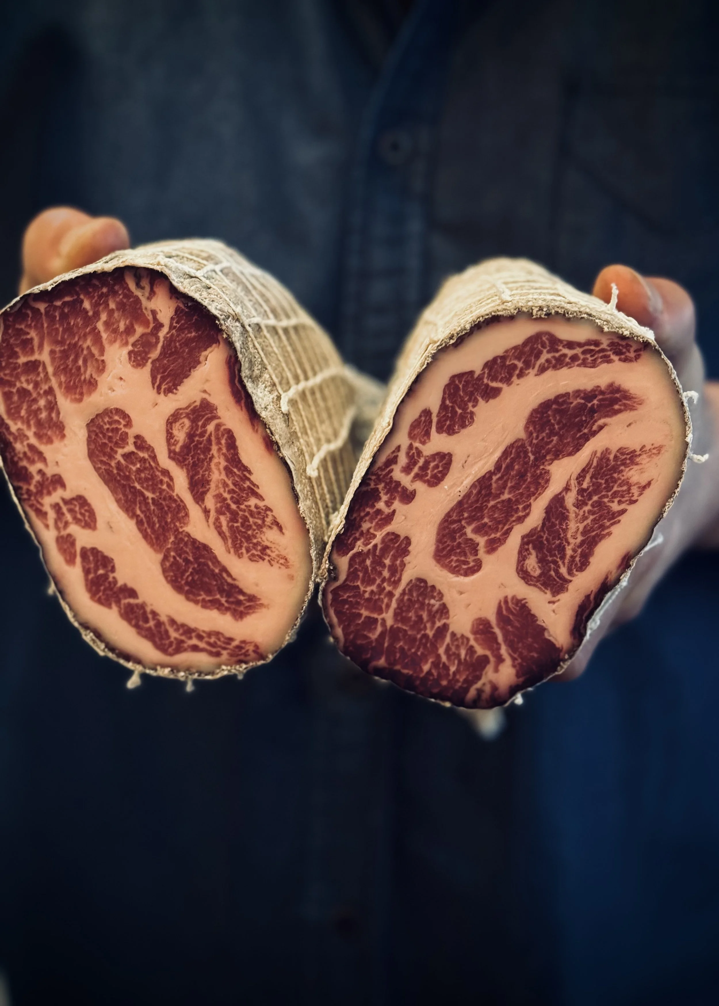 アグ・ブロスでは、品質への取り組みが食堂に止まらず、手作りのデリカシーをオフセールで提供するブッチャリーにも及んでいます。自家製のシャルキュトリー、スモークドミート、無窒素・無亜硝酸塩のシーフードの職人技の味わいを堪能してください。ドライ麹で熟成されたビーフやポークの豊かな複雑さ、そして完璧に職人技で作り上げたソーセージやスナックスティックの選択肢を贅沢に楽しんでください。